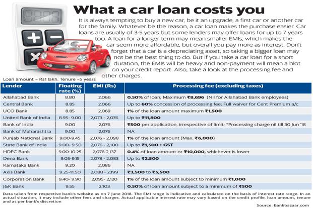 Car loans are usually of 3-5 years but some lenders may offer loans for up to 7 years too. A loan for longer may mean smaller equated monthly instalments (EMIs), which makes the car seem more affordable, but overall, you pay more as interest. Don’t forget that a car is a depreciating asset, so taking a bigger loan may not be the best thing to do. But if you take a car loan for a short duration, the EMIs will be heavy and non-payment will mean a blot on your credit report. Try to strike a balance.